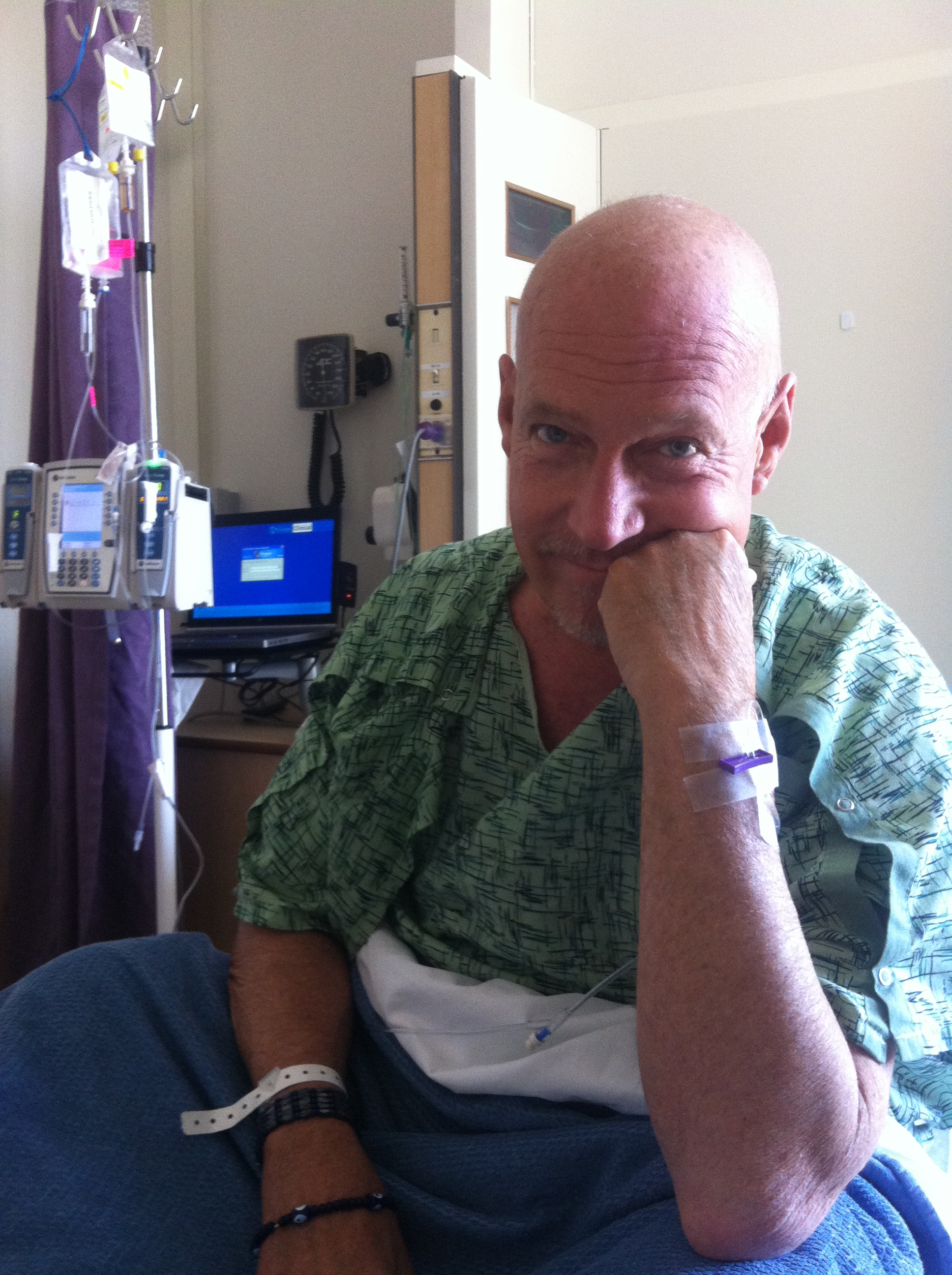Here’s how we got to where we are today and this smaller hospital room: I just finished my first round of treatments last week. I was told to expect to feel crappy for a week or so after radiation. But what I was feeling brought crappiness to a whole new level. Couldn’t get out of bed, my supply of smart ass comebacks was running low and the right side of my body was getting noticeably worse in terms of numbness from head to toe. So last night, Susie and I showed up at the hospital again with our best Oliver Twist voices—“Can I have some more sir?”